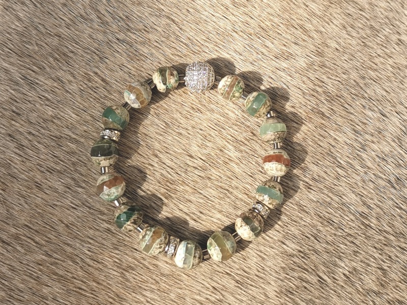 Armband aus gecracktem Berg-Kristall mit einem braun-meliertem Achat